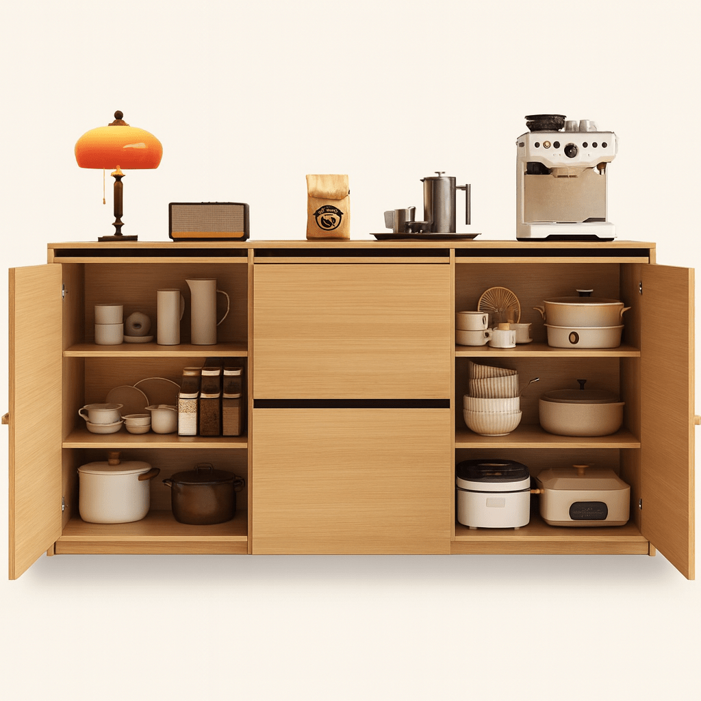 Scandinavian Style Simplistic Wooden Sideboard Storage Cabinet For Kitchen