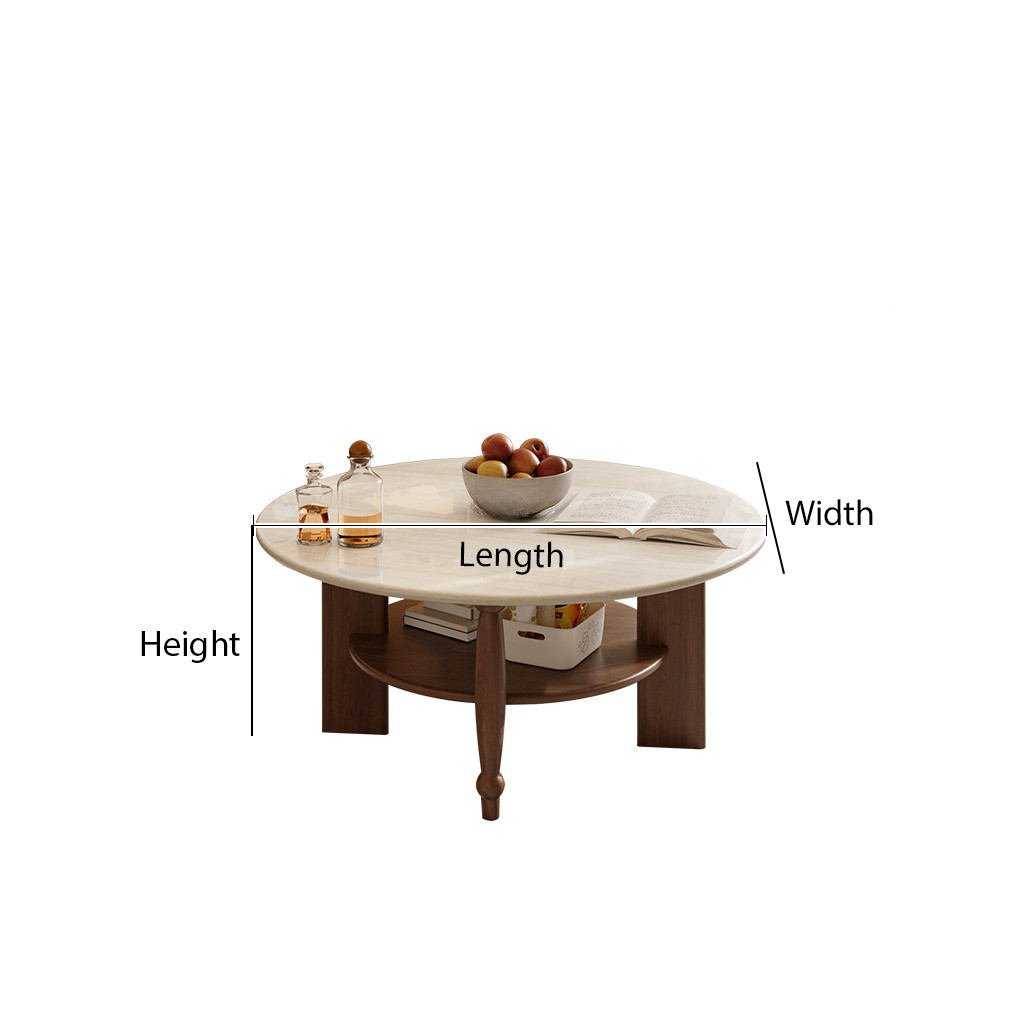Mid Century Oak Solid Wood Round Marble Top Coffee Table For Living Room