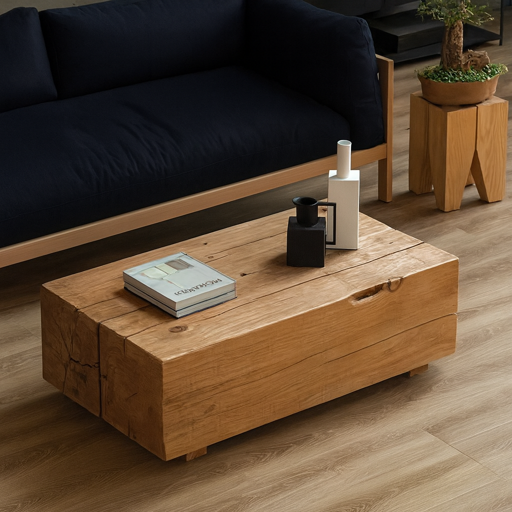 Minimal Wabi Sabi Solid Wood Coffee Table For Living Room