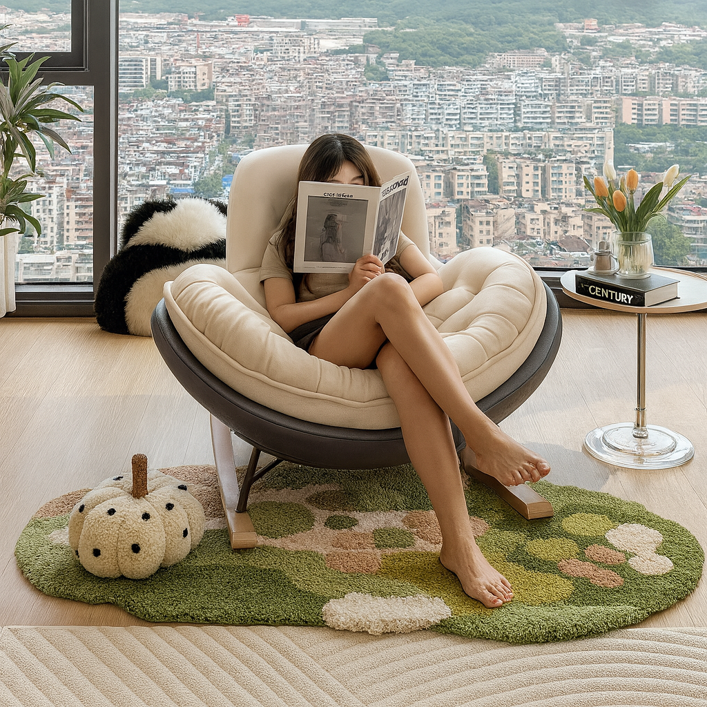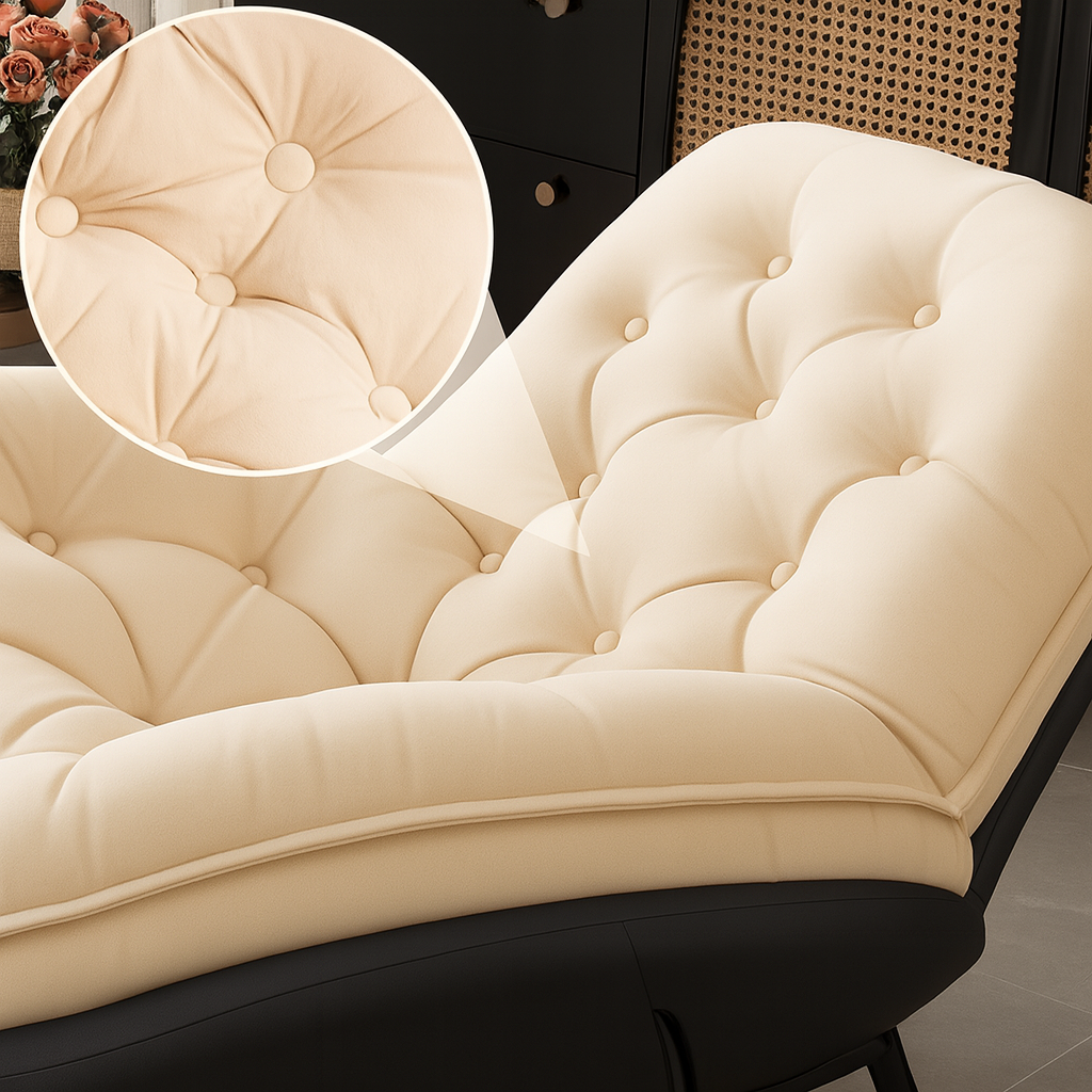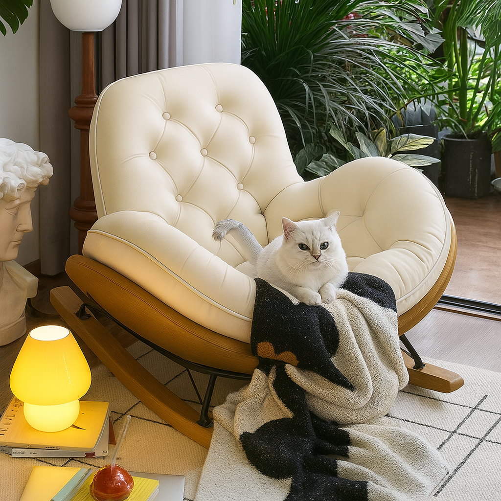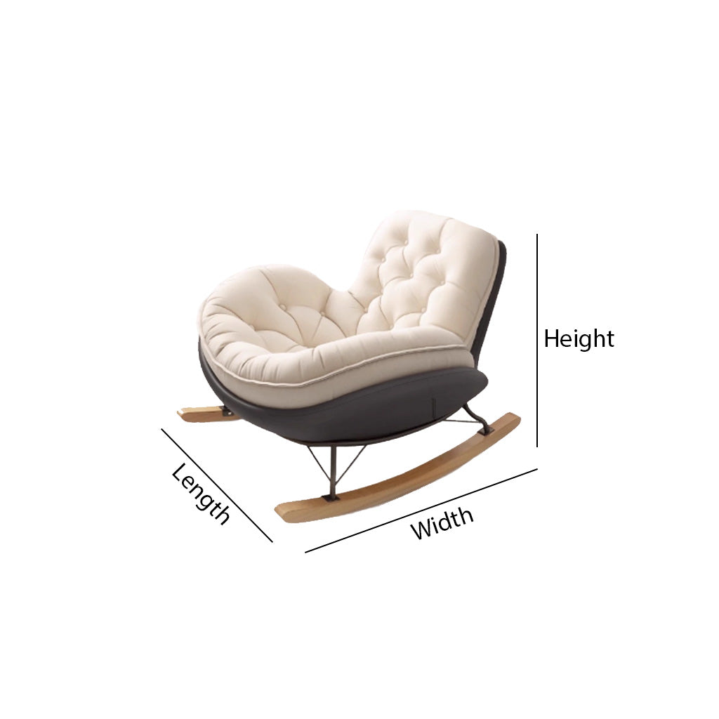 Blending comfort with contemporary design, this modern rocking lounge chair is a perfect addition to living rooms or reading spaces. Its tufted cushioned seat provides a soft and inviting place to relax. The chair is designed with a sturdy curved wooden base and metal supports, ensuring smooth rocking motion and lasting stability. The combination of fabric upholstery and sleek structural elements creates a stylish look. Ideal for relaxing, reading, or unwinding, this rocking lounge chair brings both comfort and modern elegance to your home environment.