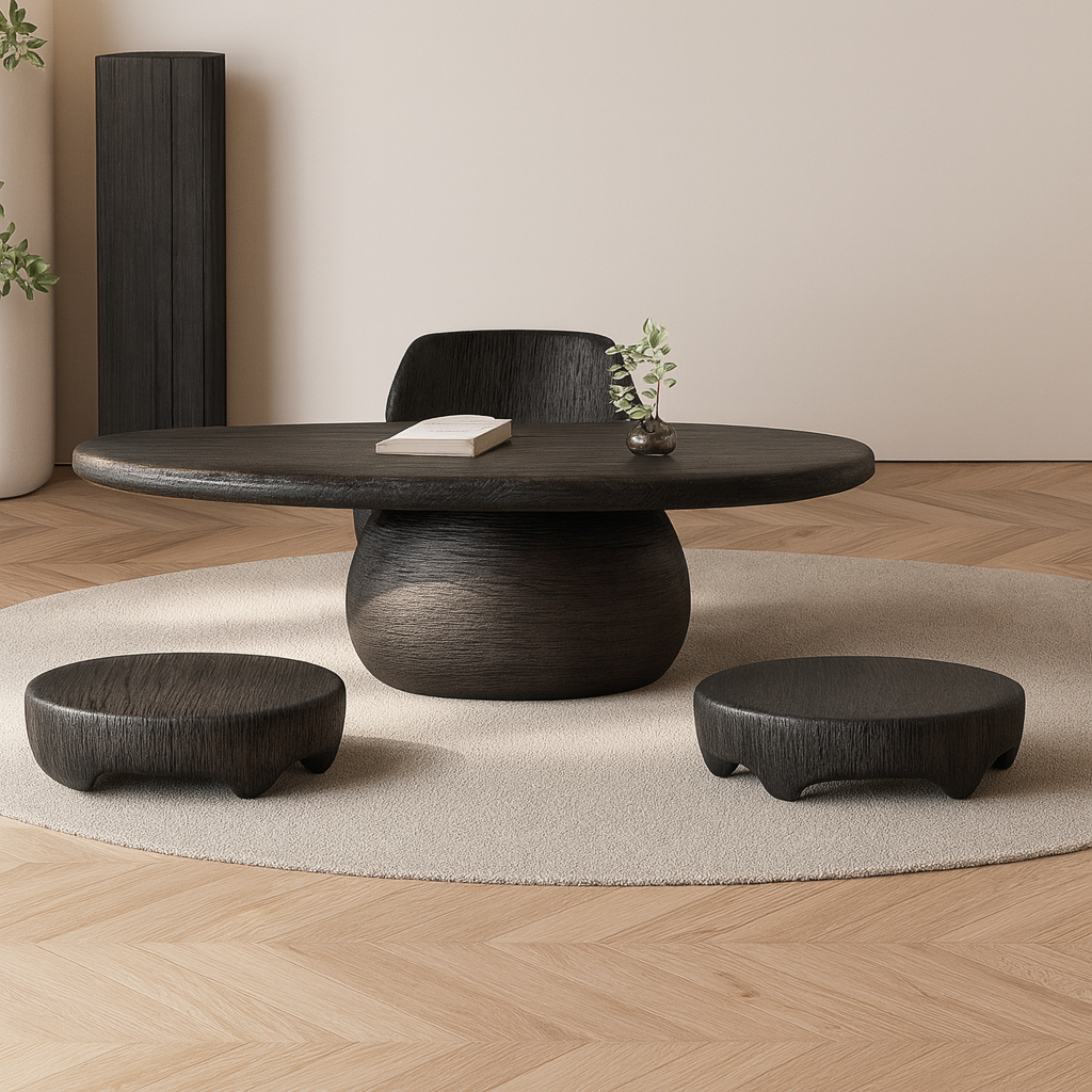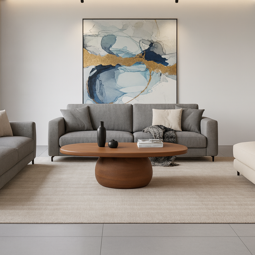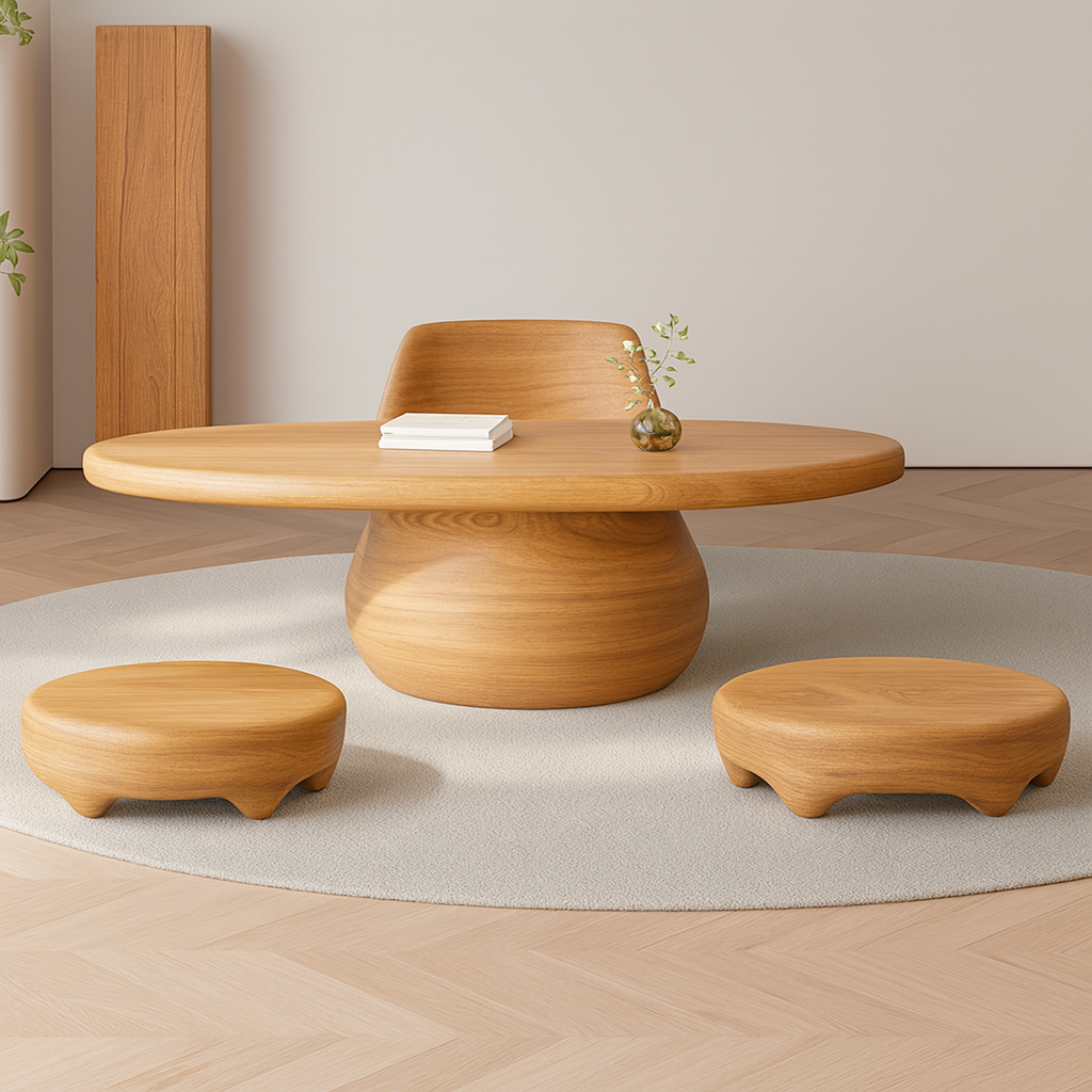Crafted with a contemporary aesthetic, this wooden coffee table features a beautifully curved oval surface that exudes simplicity and balance. The seamless silhouette and soft edges lend a sense of calm and sophistication to any living space. The standout element of this piece is its sculptural rounded base, designed to provide both stability and visual appeal. Built from durable wood, it highlights the natural grain and texture that make each table unique. The generous tabletop offers ample space for books, décor, or a simple centerpiece. Perfect for modern and minimalist interiors, this coffee table combines artful design with everyday functionality. Its organic form and warm wooden tone bring harmony and elegance to the living room, making it a stylish and inviting focal point.