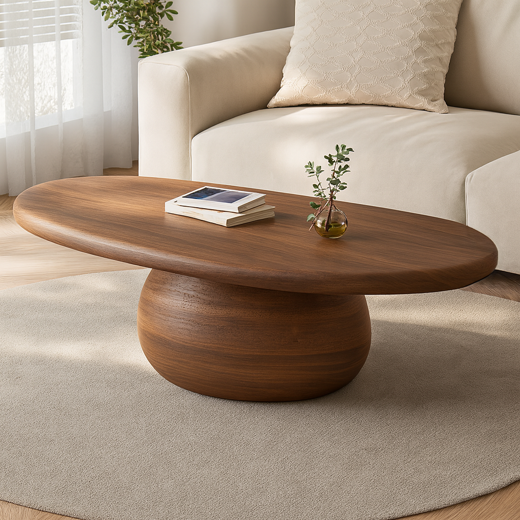 Contemporary Oval Solid Wood Coffee Table With Sculptural Base For Living Room