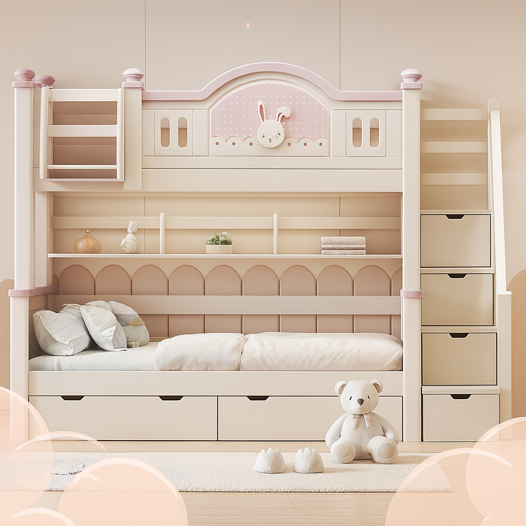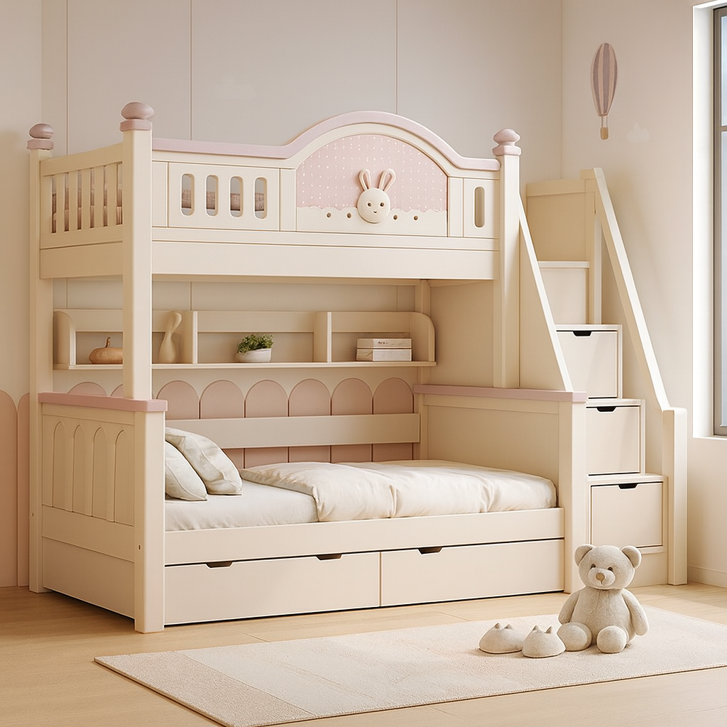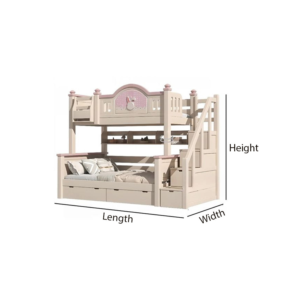 Kids’ Bunny Themed Bunk Bed With Storage Stairs And Drawers For Kids Bedroom