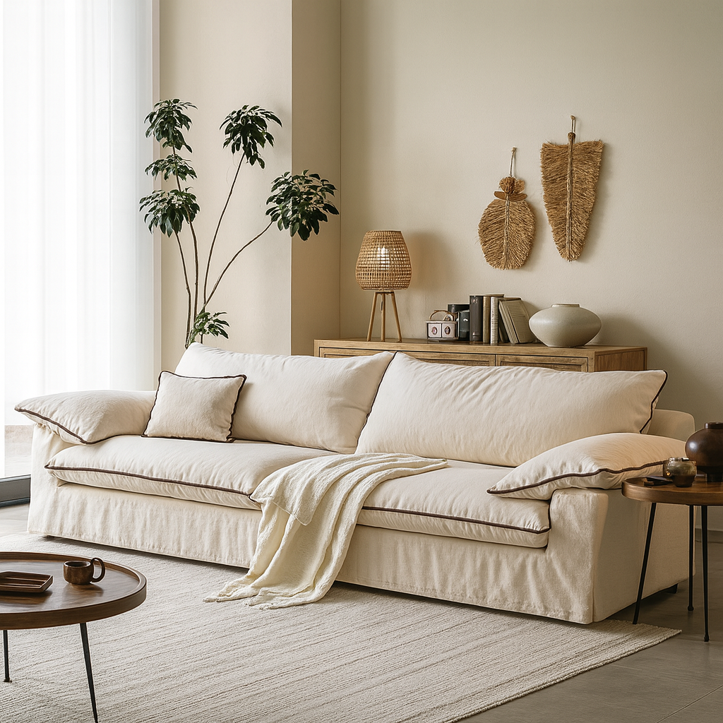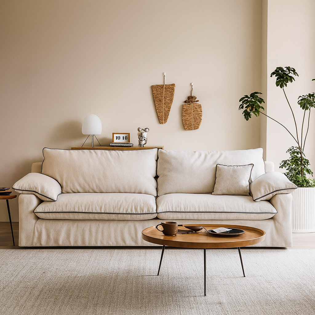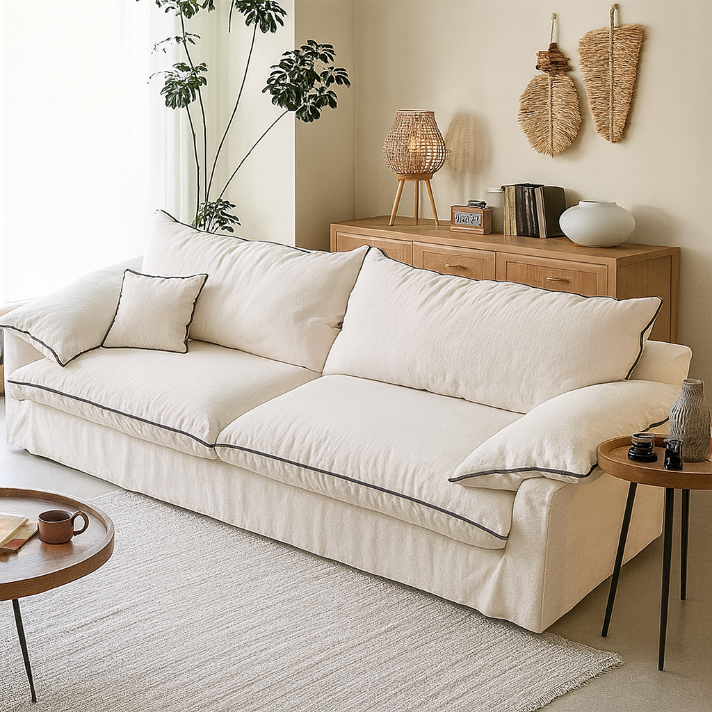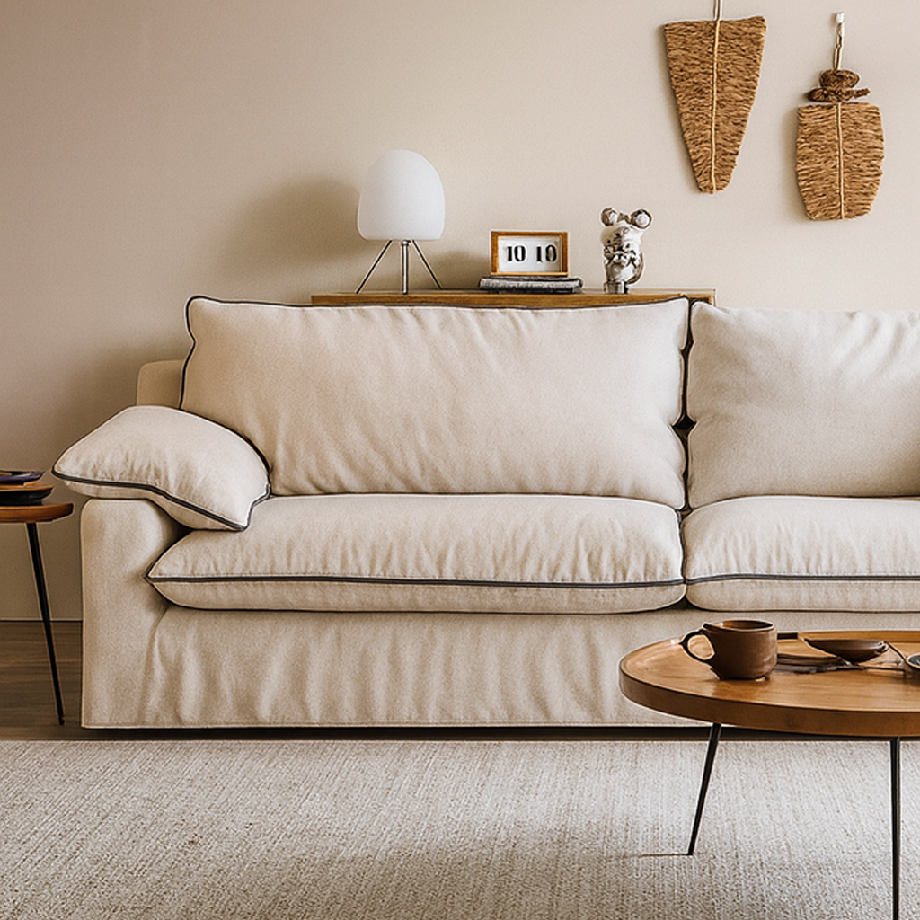 Mid Century Wooden Frame Cotton Linen Sofa For Living Room