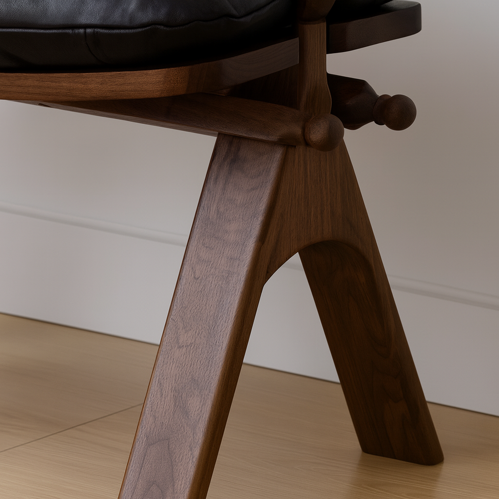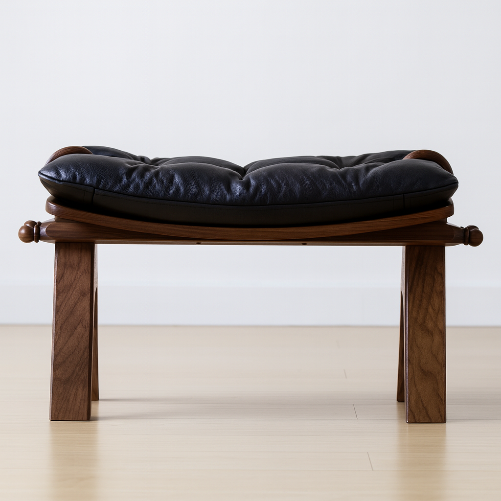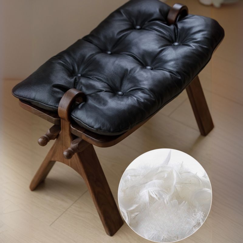 Minimalist Leather Ottoman With Wooden Base For Living Room
