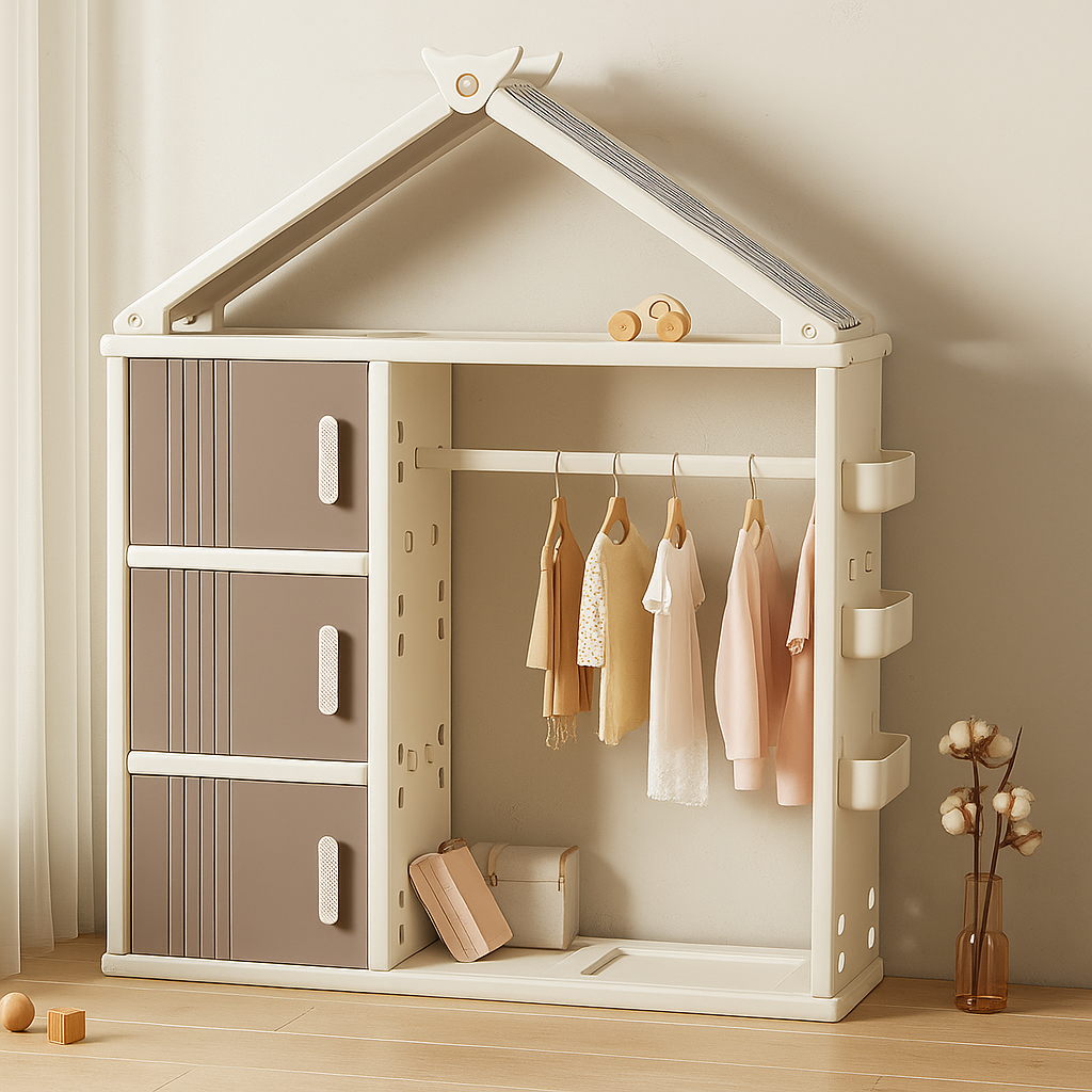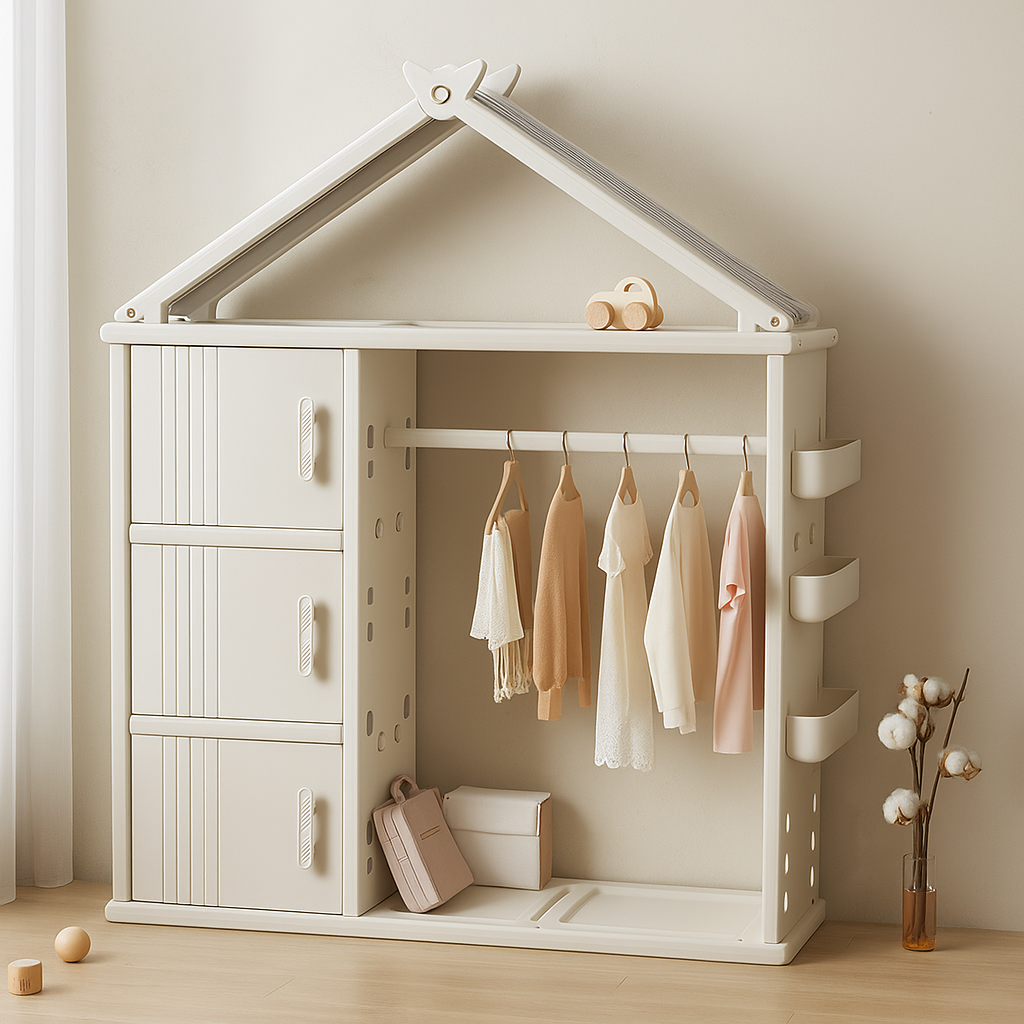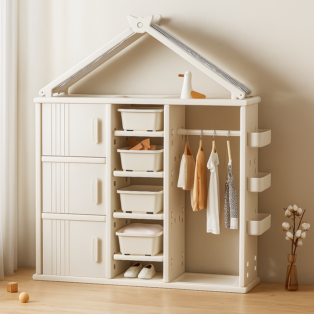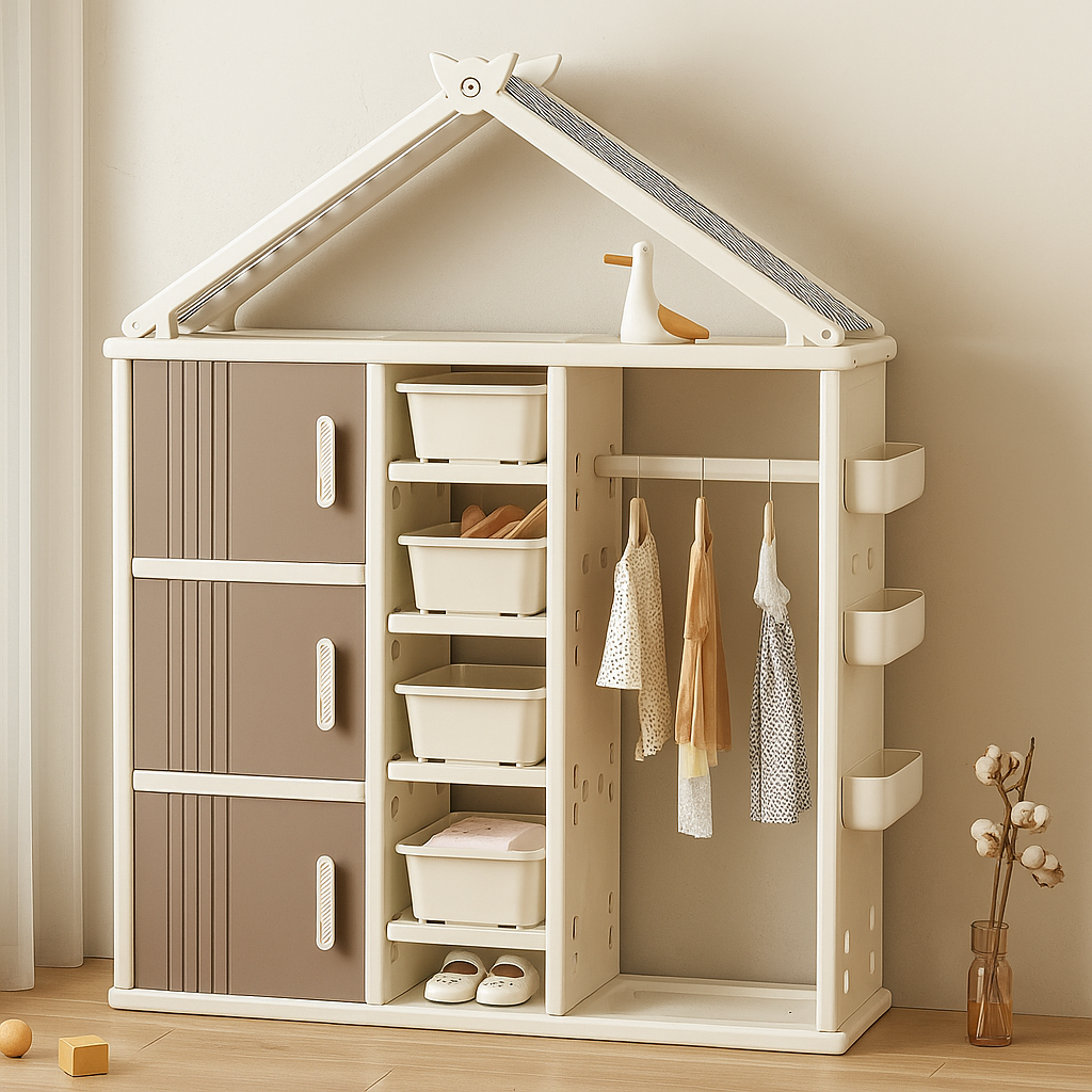 Modern Style Plastic Frame Wardrobe With Shelves And Clothes Rail For Kids Bedroom