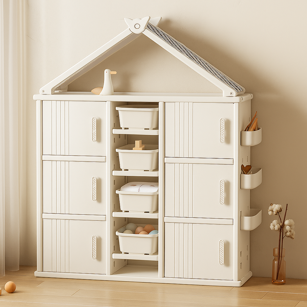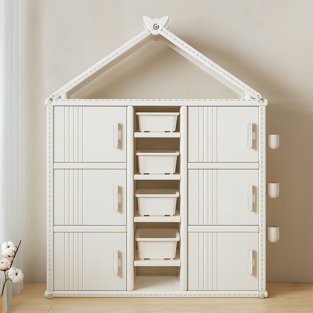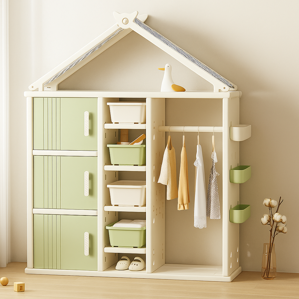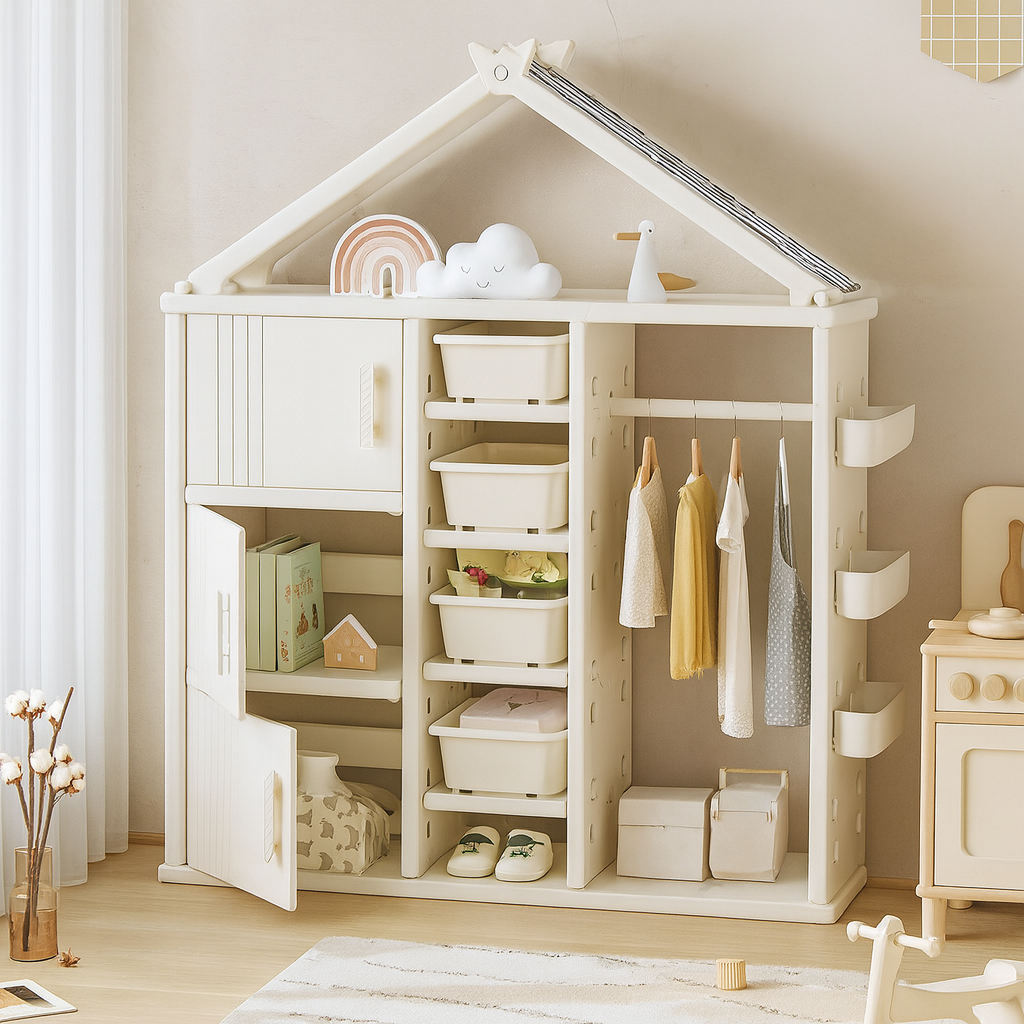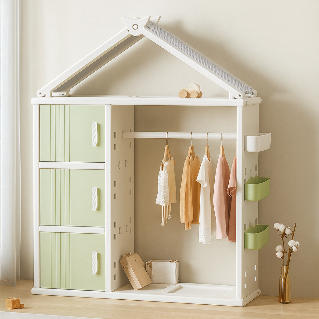Modern Style Plastic Frame Wardrobe With Shelves And Clothes Rail For Kids Bedroom