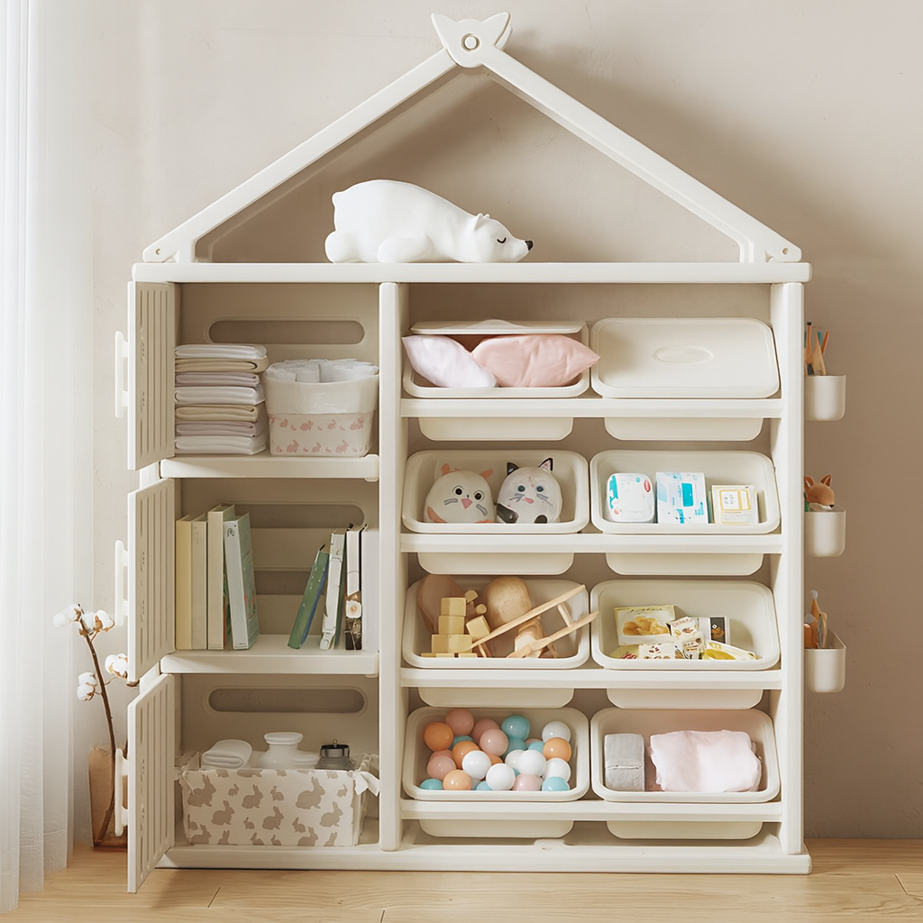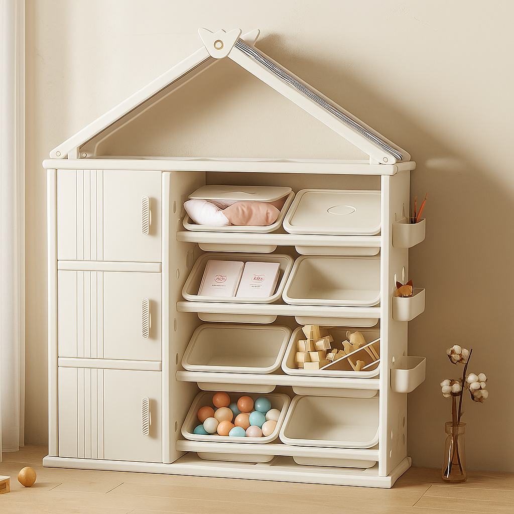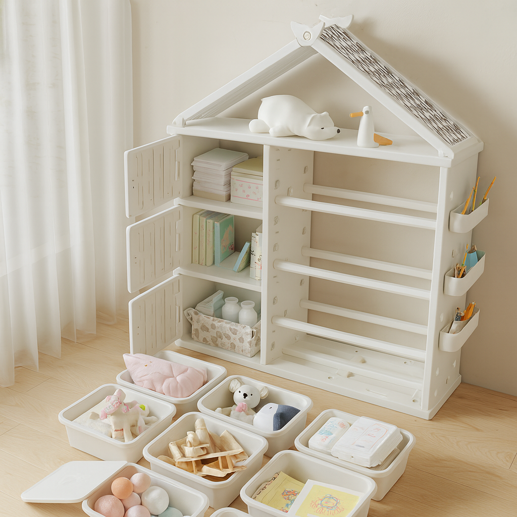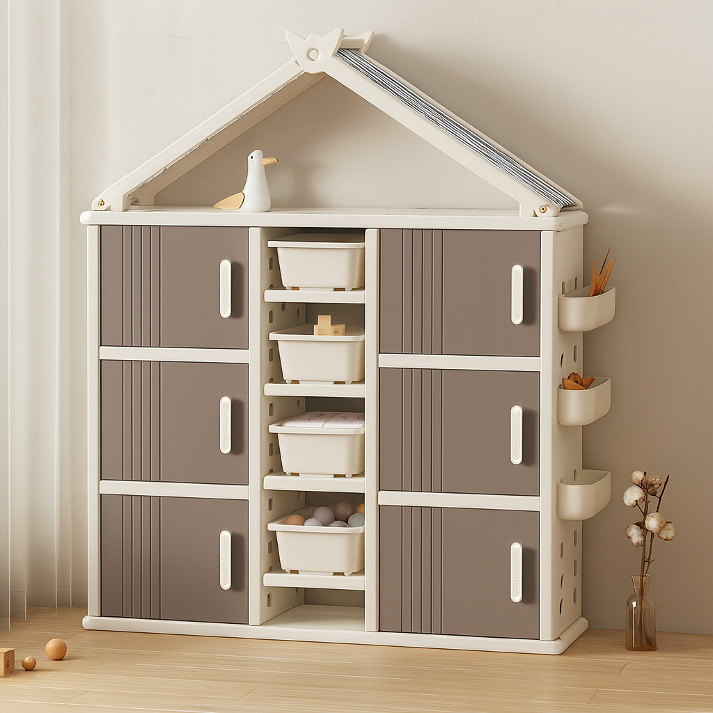 Modern Style Plastic Frame Wardrobe With Shelves And Clothes Rail For Kids Bedroom