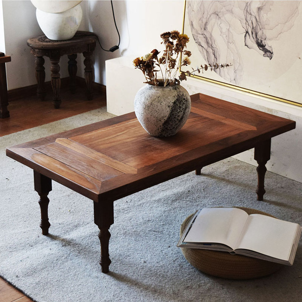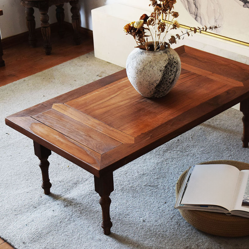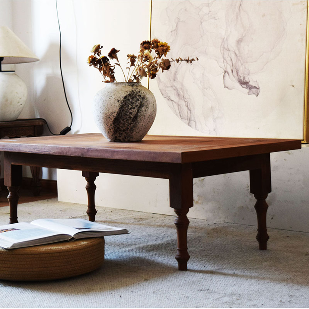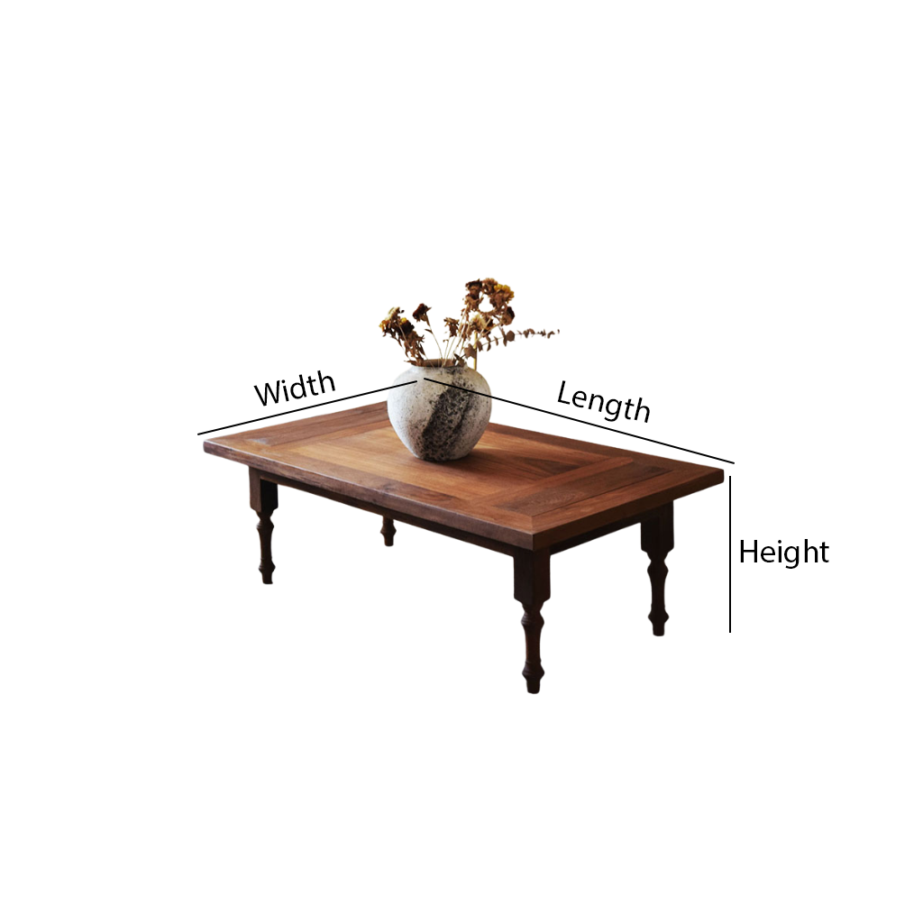Crafted in a farmhouse style, this wooden coffee table combines with classic craftsmanship. The table stands on elegantly turned legs that enhance its traditional character while ensuring sturdy support. The solid construction provides durability, making it suitable for both daily use and decorative display. Ideal for living rooms or lounge areas, this piece brings a sense of rustic charm and natural beauty, blending seamlessly with both vintage and modern interiors.
